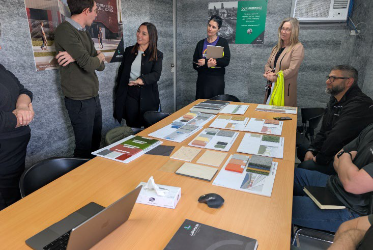 Key stakeholders including Principal Renai Diamond, teachers, architect, the builder and project team came together to select the colours and finishes for the new permanent facilities.
